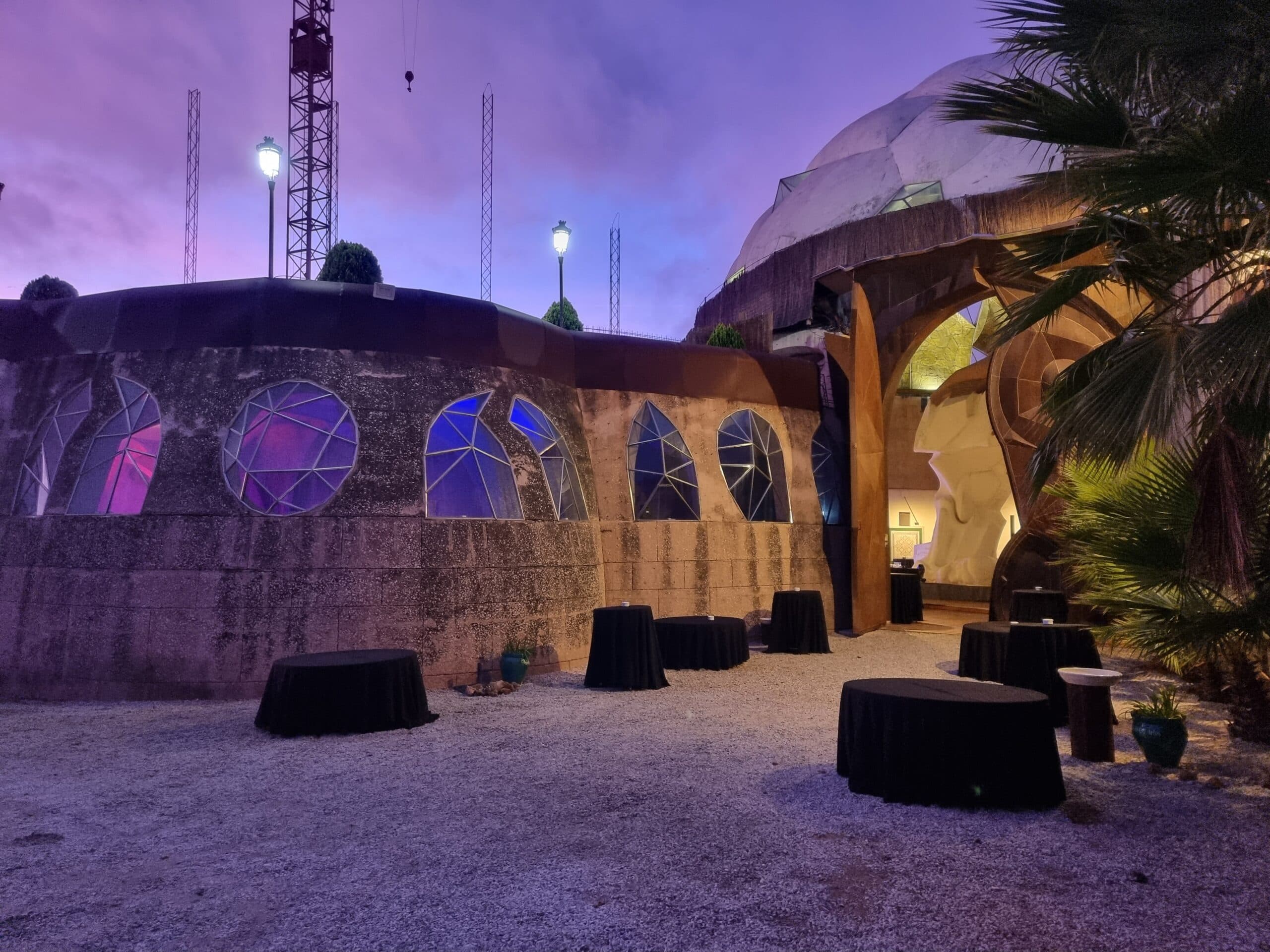 - Sala Cúpula: Banquete 300 pax · Cóctel 450 pax. Techo acristalado y vistas al arte cerámico.